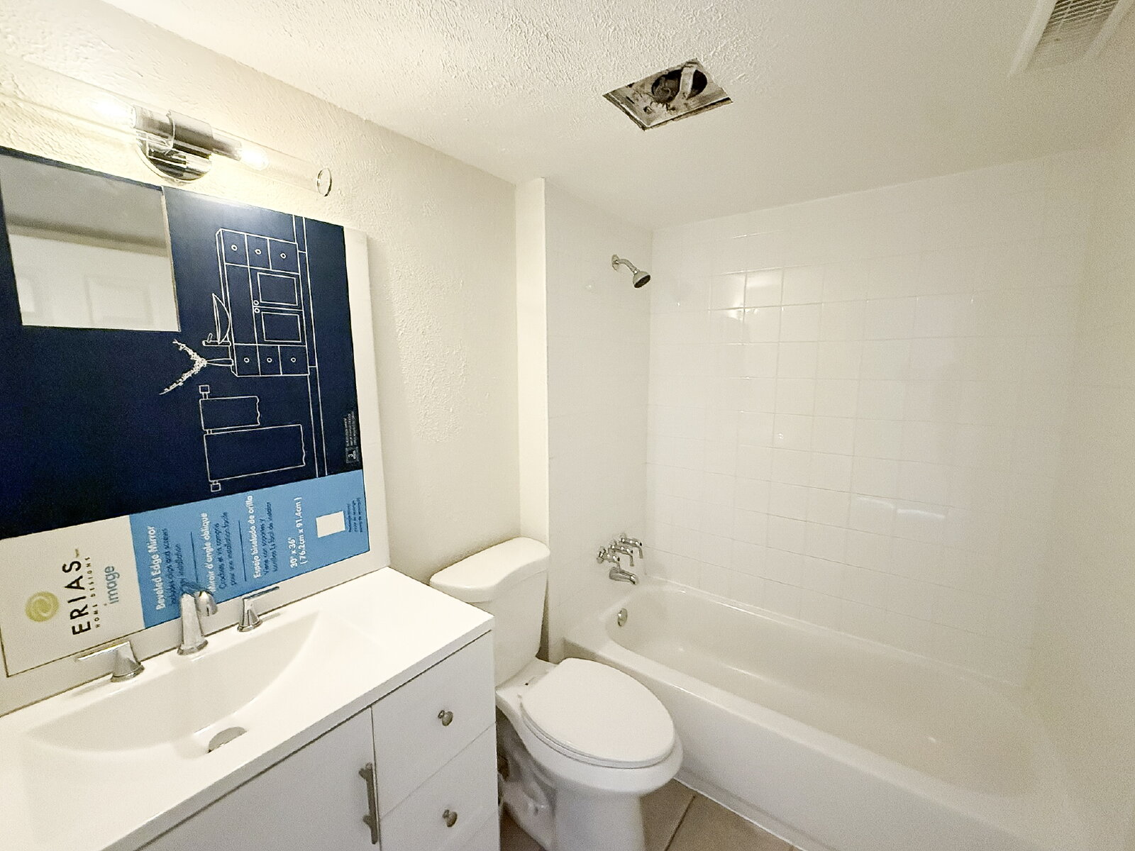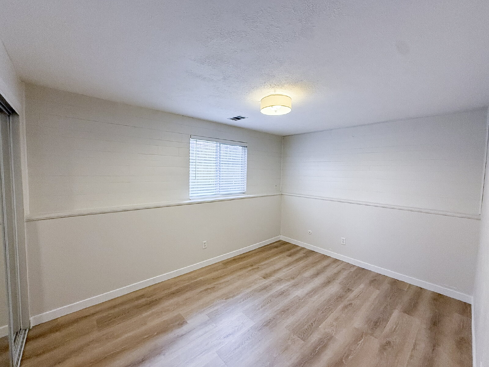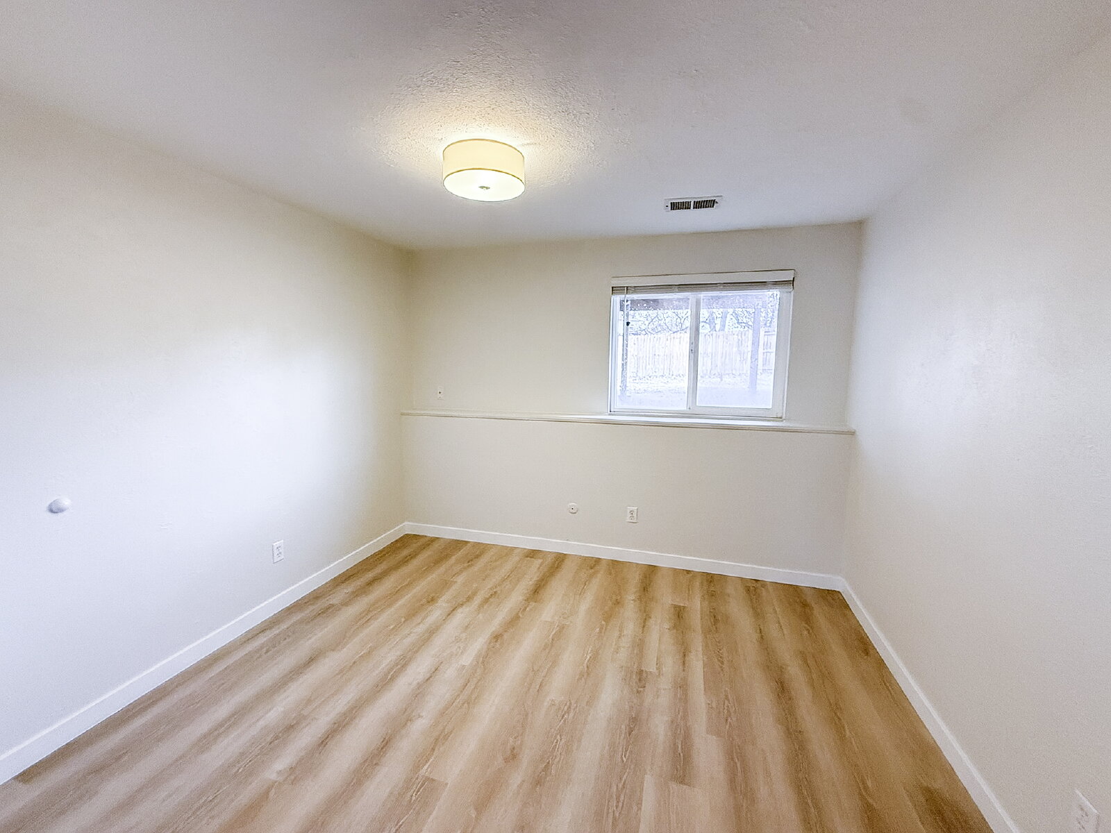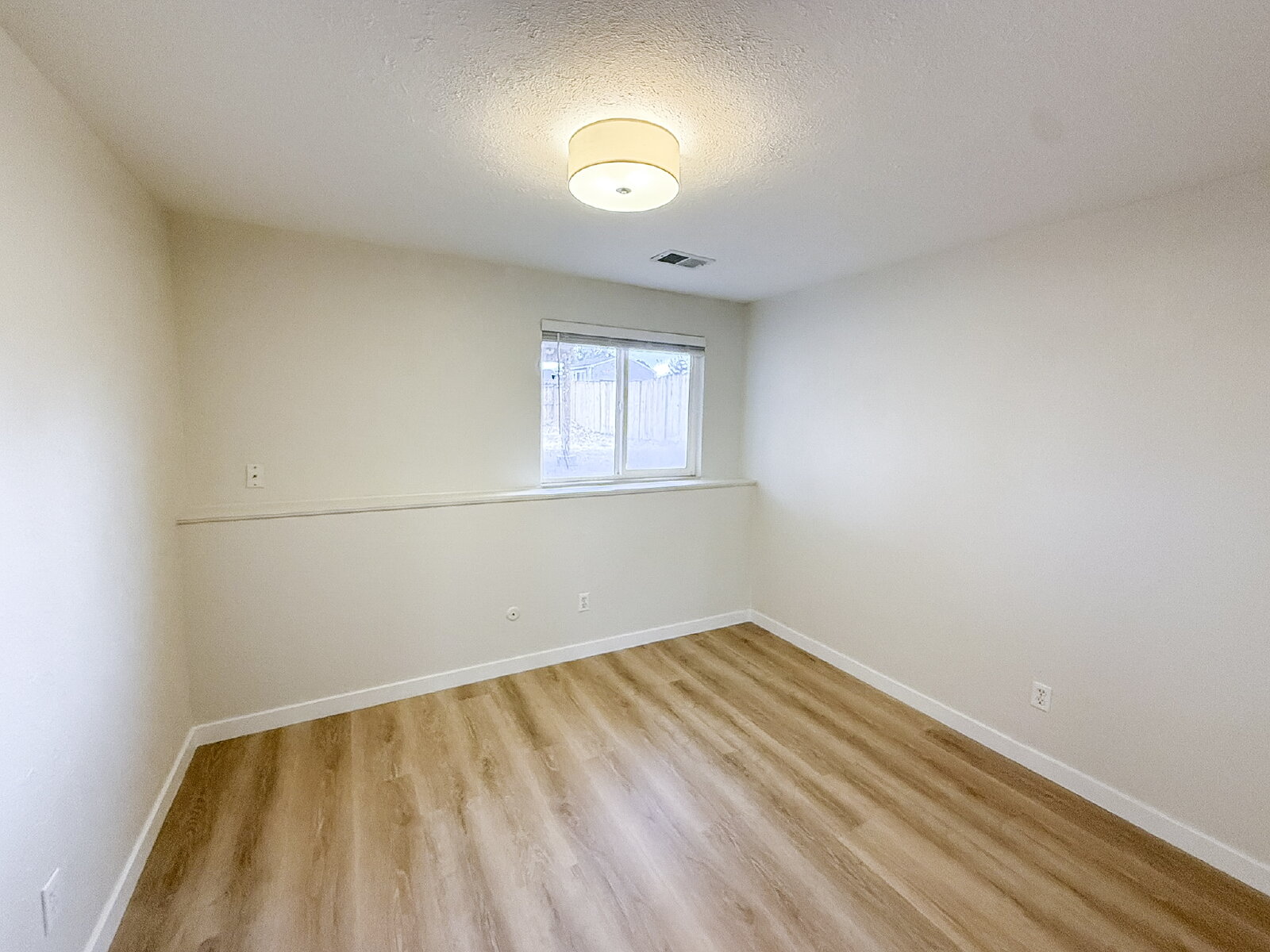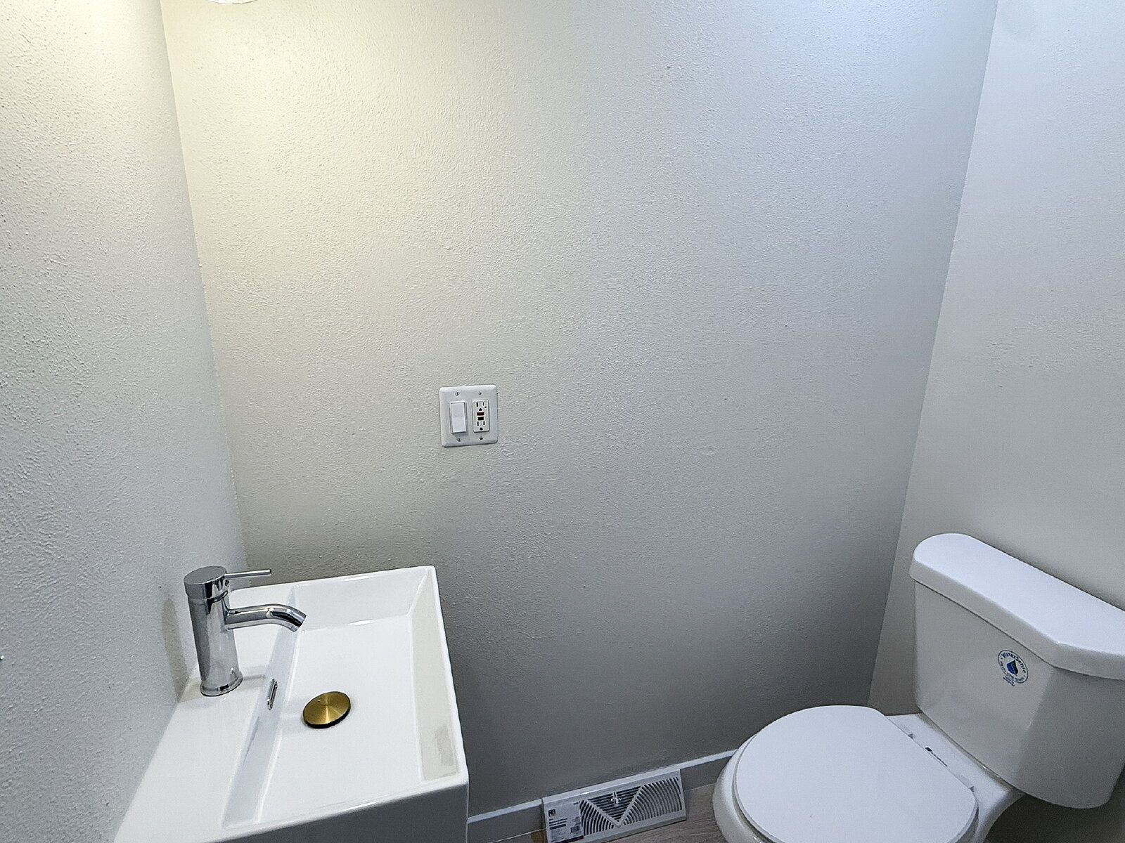 Downstairs, you’ll find three bedrooms and a full bathroom with an updated vanity and a clean tile surround. The layout provides a nice separation between living and sleeping spaces.